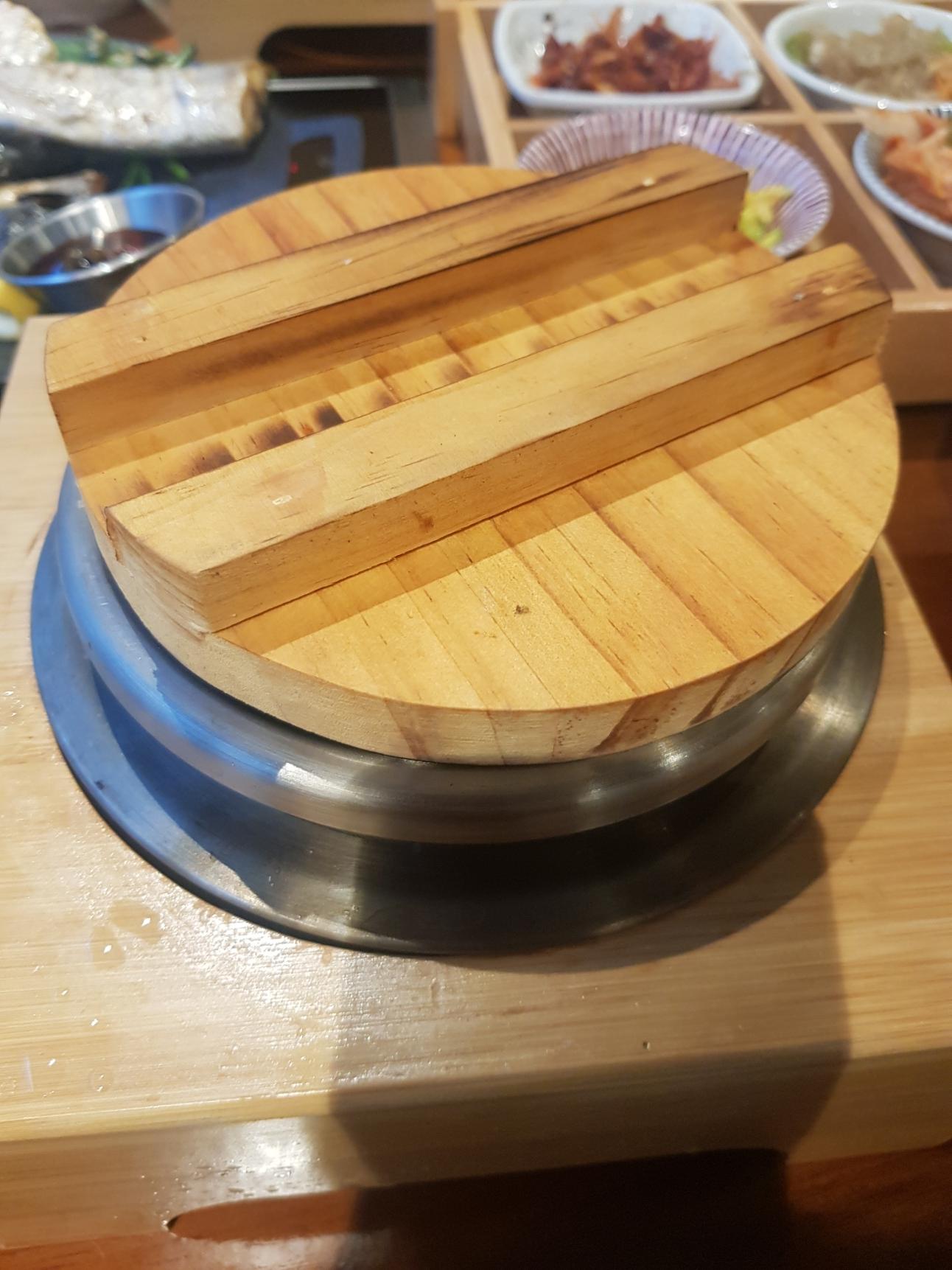 누룽지에 숭늉 부어놓고 뚜껑을 덮어둡니다. 밥 다 먹고 후식으로 누룽지를 박박 긁어서 먹어줘야지요
