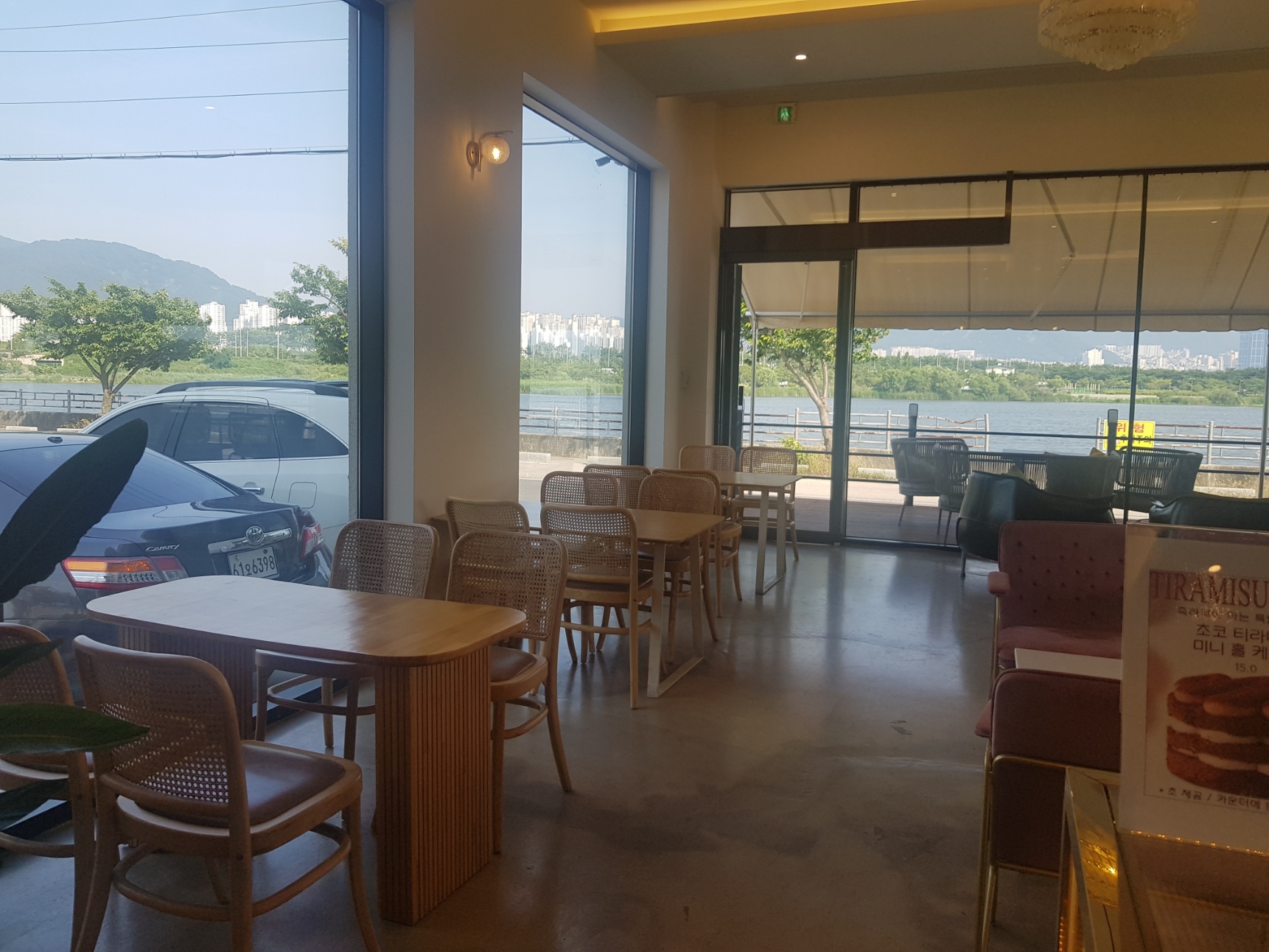 벨라비타 카페 바로 앞은 서낙동강 조망이 펼쳐집니다. 지인이 비가 많이 내리는 날 방문했는데 창밖으로 비 내리는 모습도 너무 좋았다고 하네요