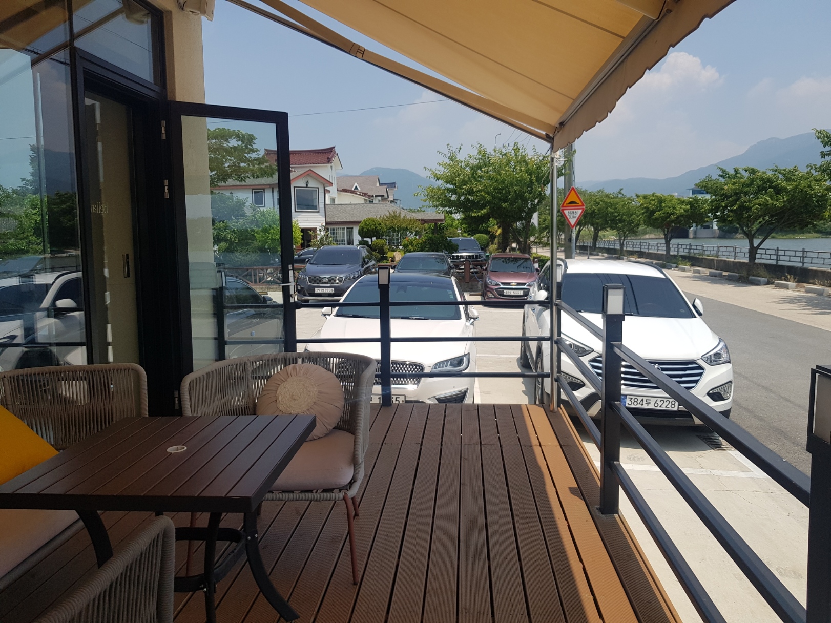 1층 야외 테이블도 3개 정도 있는데 제가 간 날은 맑은 날씨에 적당히 바람도 불어 주어서 바깥에 앉아 있기도 아주 좋았습니다. 평화로운 풍경을 마주하며 제대로 여유를 즐길 수 있는 곳이란 생각이 듭니다