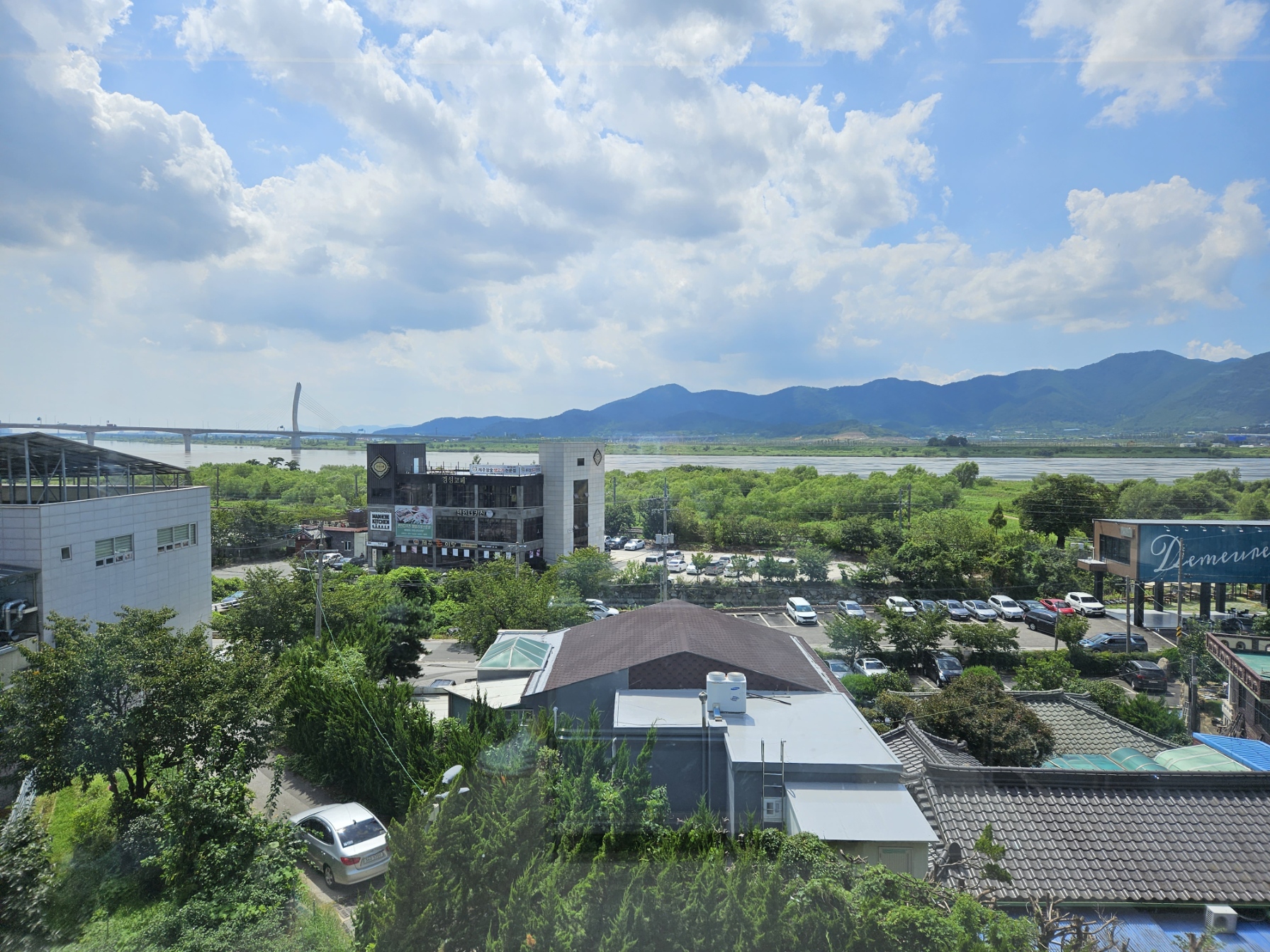 손님들도 많아서 2층 창가자리를 잡으려면 눈치싸움이 치열합니다. 누가 일어나자마자 바로 달려가서 자리를 잡아야 하거든요. 겨우 창가자리 잡고 앉아서 경치를 잠시 감상해 봅니다. 날씨도 좋고 구름도 이쁘고 빵도 맛있고 모두 만족이네요