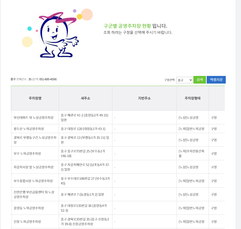 ● 부산시 공용주차장 정보(주차비, 이용시간등) 제공